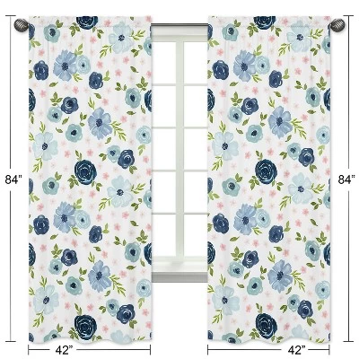 Navy Blue, Blush Pink and White Watercolor Floral Window Curtain Panel Set will help complete the look of your Sweet Jojo Designs room. These window treatments instantly change the look and feel of any room, adding layers of warmth and style. Each panel measures 84 in. x 42 in. Window Curtain Panel Set Includes: 2 Long Curtain Panels. Fits standard rods up to .75 inches in diameter.