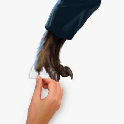 Fans of Universal and Classic Monsters rejoice. This giant Wolf Man wall decal will nicely complement the rest of your RoomMates / Universal Monsters wall decal collection. Now you can display this iconic Wolfman character on your walls for Halloween or year-round, if indeed, you are or know of a true monster fan! Made with a high-quality vinyl and an adhesive that won t leave residue behind, you can remove these decals without being haunted by their former presence. The set also comes with a variety of smaller bonus decals that can be used to decorate around the main character or anywhere onto smooth surfaces. Just peel and stick! Look for all Universal Classic Monsters decals from RoomMates and collect em all!