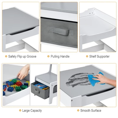 - Multiple Hidden Toy Reservoirs: Both the table and chair are designed with a built-in storage box for kids to organize their books, toys and building blocks. Grooves and handles will help to open and pull out. It will exercise children’s independence to manage own items and keep their own room in order.