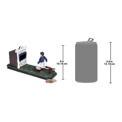 With this foundry iron mechanical bank, you can aim and pull back on the right leg of this classically uniformed kicker for your coins to save the game! Whether you re an antique bank collector or just teaching kids the value of money, this mechanical, heavyweight antique replica cast in authentic foundry iron is a clever gift and a great desktop collectible. 9½”Wx3″Dx4″H. 3 lbs.