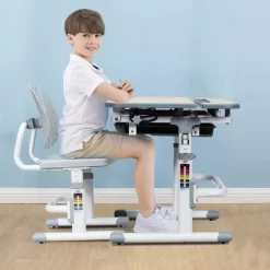 Costway 3 Piece Kids Wooden Table And Chair Set With Blackboard For Drawing Reading Green/Gray/White