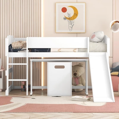 Low Study Loft Bed With Rolling Portable Desk And Chair – ModernLuxe