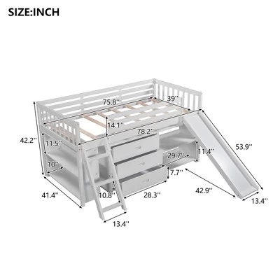 - [Stable and Durable] This loft bed is made of high-quality pine wood and MDF board, which is very stable and durable. The bed frame has solid slats and has good load-bearing capacity, so it will support your mattress well without the need for box springs.