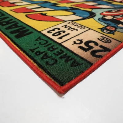 Comic book fans will love this Retro inspired Super Hero Rug featuring Captain America. Jumbo Rug measures 4’6″ x 6’6″ and is Digitally Printed providing great color and detail. Perfect for Bedroom, Playroom or Family room!