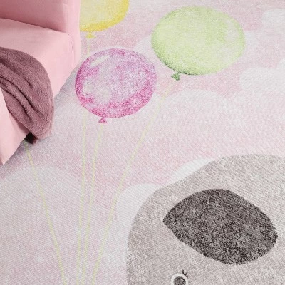 Refresh your playroom with the Karla Nursery Elephant Colorful Kids Indoor Area Rug. This delightful area rug will enhance any living space. The Polyester construction is incredibly durable, while being soft and comfortable. This beautiful area rug can handle the most frequented indoor areas of your home, including; the kitchen, family room, basement, and entryway. Finished with a Cotton canvas backing, this rug is a long-lasting and durable option for homes with children and pets (rug pad recommended)