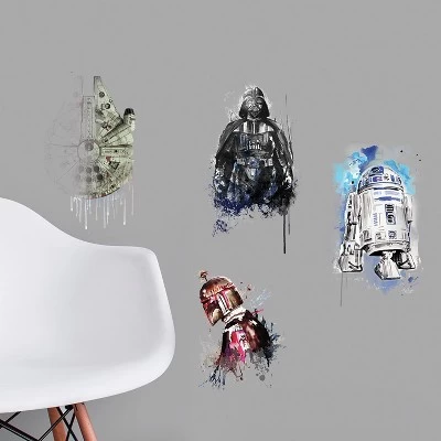 Walls instantly come to life with Star Wars Iconic Watercolor Peel and Stick Wall Decals by RoomMates. Complete with six wall decals, spread this decorative theme throughout an entire room in seconds. The application process is fast and easy. Simply peel and stick decals to any smooth, flat surface. Remove, reposition, and reuse as often as needed while keeping walls and decals completely safe. Recreate this look in your room today with RoomMates.