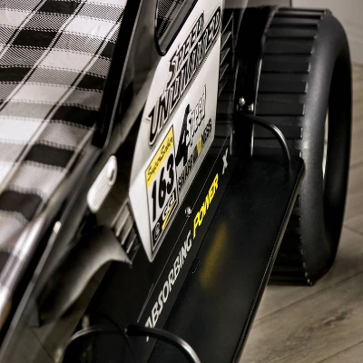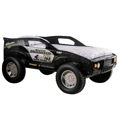 With a rugged, outdoorsy look, this Speed Jeep from the Hemmer collection is shaped like an all-terrain vehicle. Features a smooth, high gloss black finish that practically begs for a rumble through a muddy racecourse. With LED nightlights along with the footboard and tall, chrome-like rimmed wheels, this car-shaped bed offers both imagination and function, illuminating a soft glow in a child bedroom.
