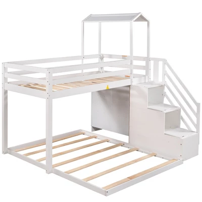 Twin Over Full Bunk Bed With Staircase, Shelves And House Roof-ModernLuxe