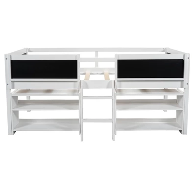 Bring the fun of the farm into your room with this low loft bed with 2 shelves. The sturdy pine bed frame is durable and sturdy. Sturdy slats provide high resting weight capacity for a restful night’s sleep. High rails provide extra sleeping safety. Double shelves flank the built-in staircase, providing plenty of book storage without sacrificing floor space.